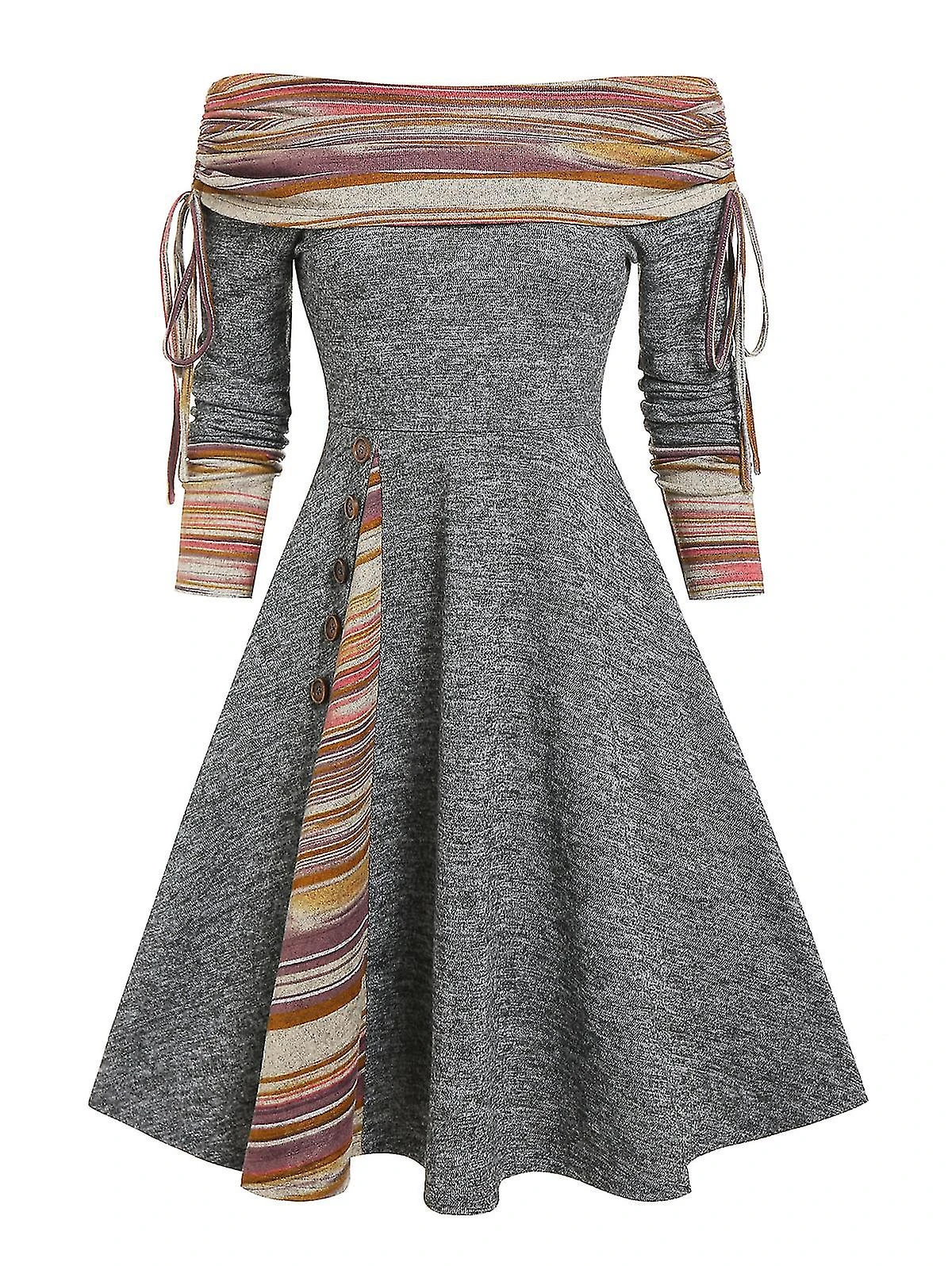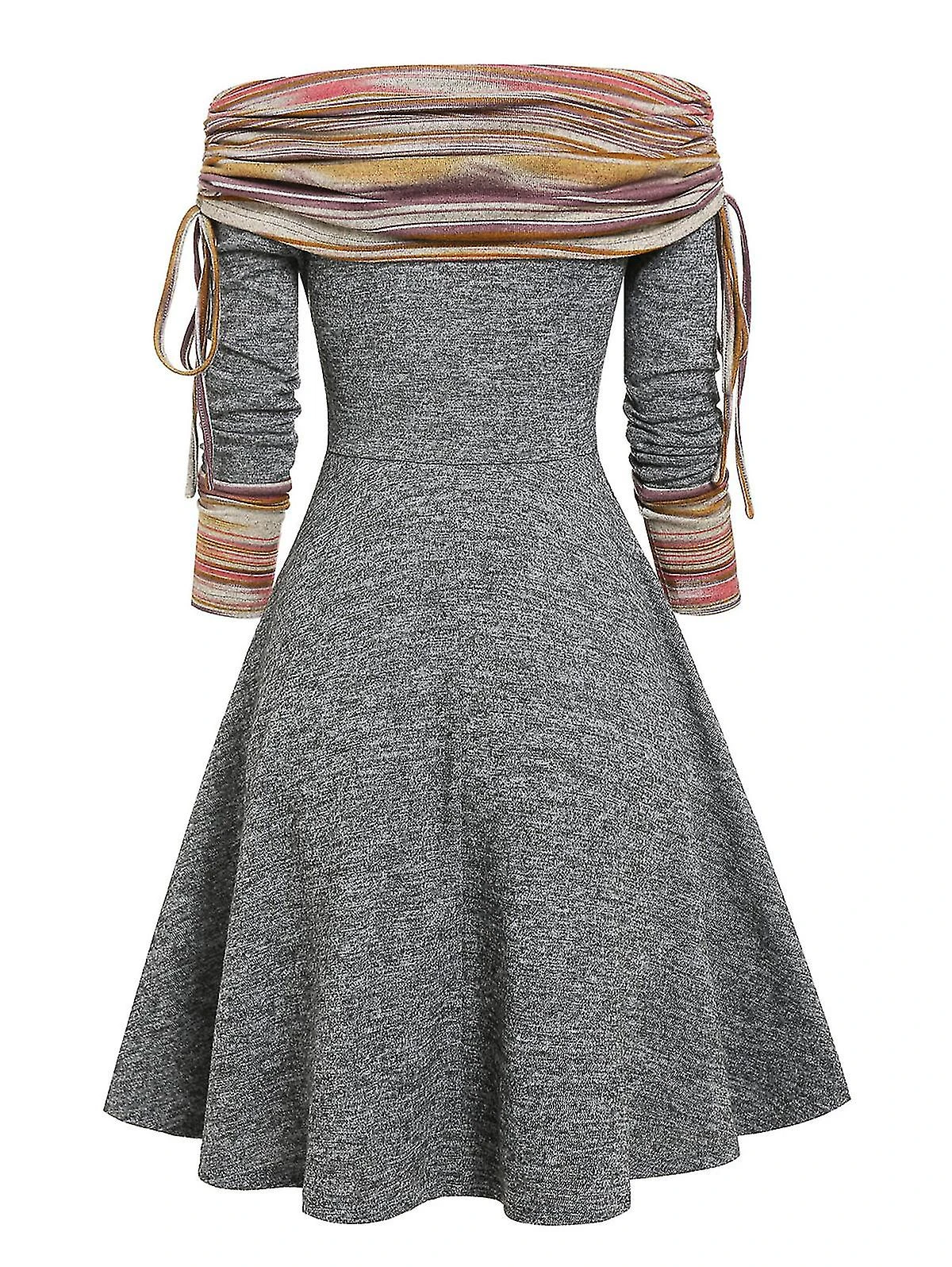Model Number : Convertible Cinched Striped Flare Dress
