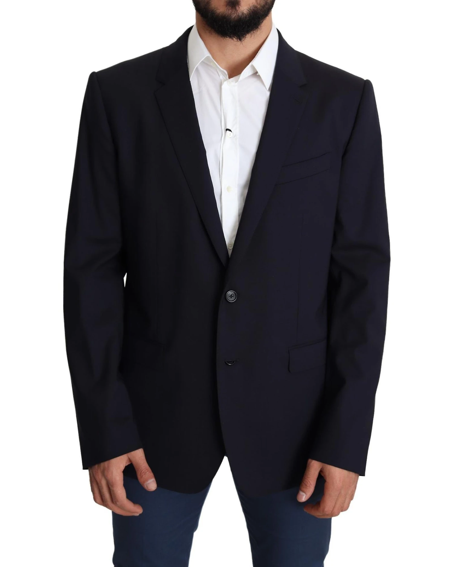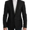 100% Authentic Dolce & Gabbana MARTINI black wool stretch one value Blazer Jacket From the exclusive MainLine Dolce & Gabbana collection Model: Formal blazer jacket Style: Single breasted one value Fitting: Regular Color: Black Three outside pockets and three inside pockets One open vent in the back Logo details Made in Italy Very exclusive and high craftsmanship Material: 98% Virgin Wool 2% Elastane Lining: 100% Rayon
