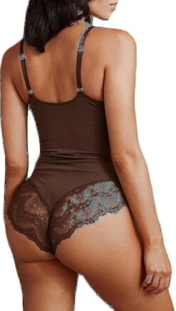 Sexy lace bodysuit adopts a typical deep V backless design, Built-in, wire-free power mesh bra lines the bust area, and Targeted power mesh panels in the waist and tummy can better compress excess fat in the abdomen which helps to show your perfect curve and create an hourglass figure.