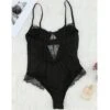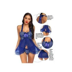 This lover underwear features a backless collar, cute bow decoration, adjustable shoulder straps, two-tone floral lace and a ruffled hem front placket design. It looks very cute, sexy and cute.