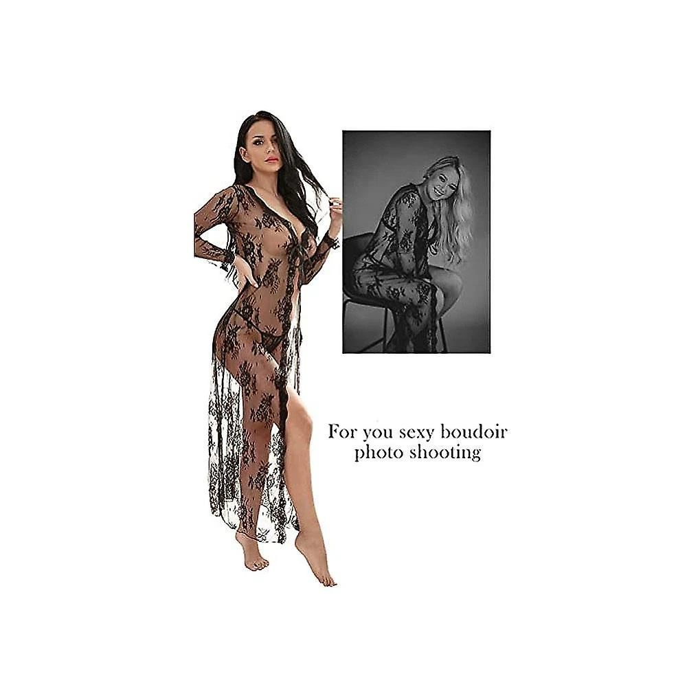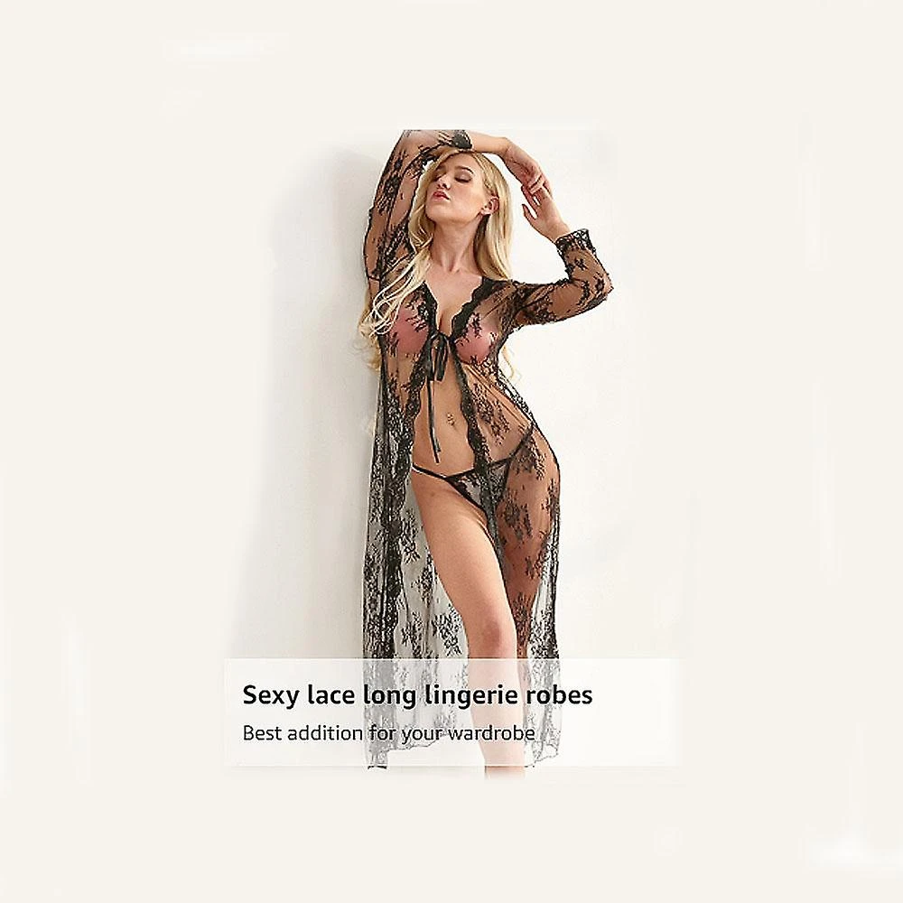 Ladies’ underwear, sleep and casual wear are made of soft transparent lace and mesh fabrics, elastic and breathable, which perfectly outlines your body shape. The lovely long kimono robe is charming and charming, highlighting the slender legs.