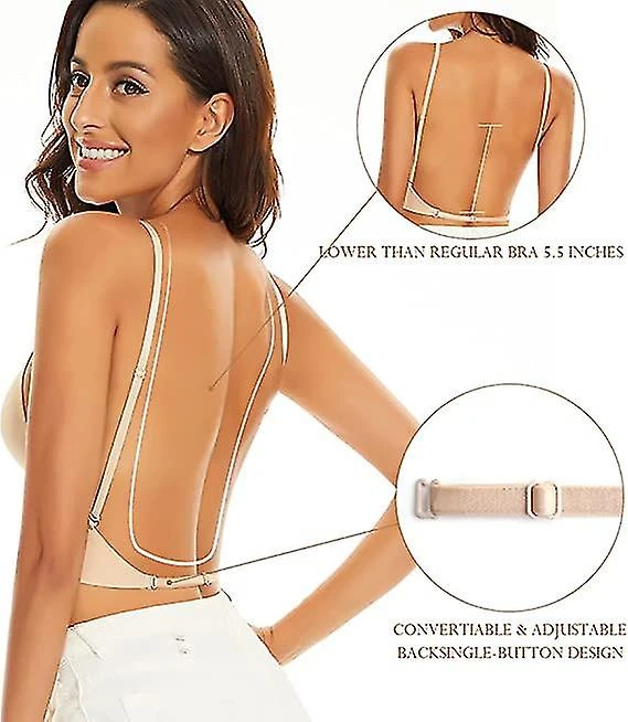 2). DEEP-V NECK & BEAUTY BACK BRALETTE FOR LOW BACK DRESS- An innovative adjustable back single-value design strap creates a low-back silhouette. Bras back strap can be pulled down lower than normal bra to 5.5 inches. invisible under tops or dresses.