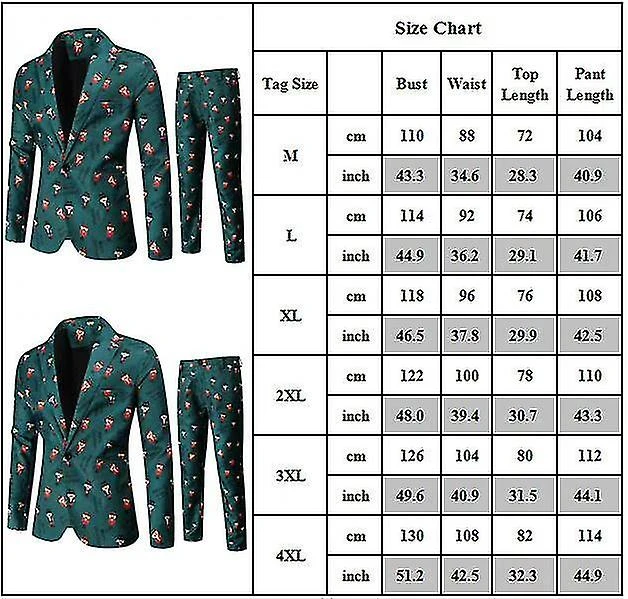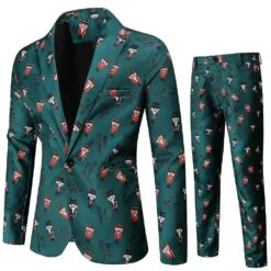 Men Christmas Printed Smart 2 Pieces Suit Set Blazer Jacket & Trousers Xmas Party Outfit Plus Size