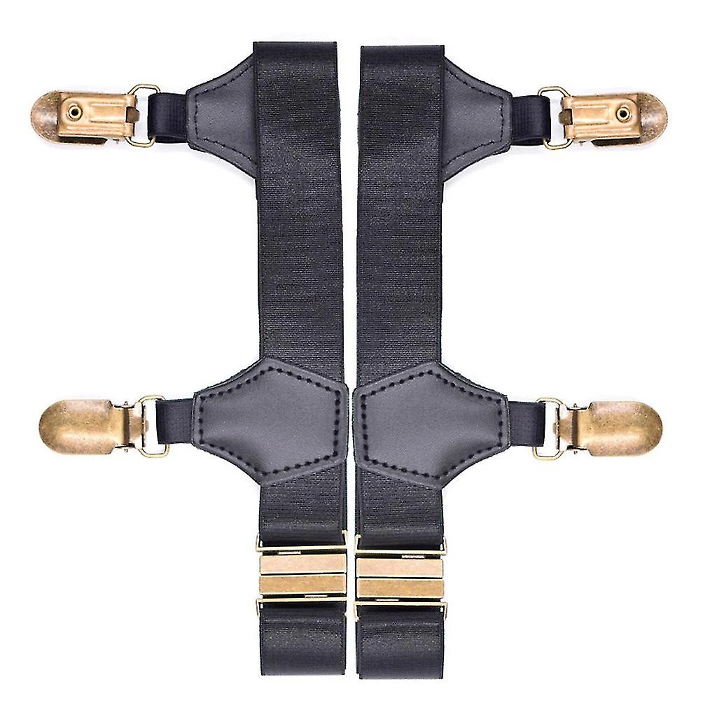 Adjustable garters with alloy buckles, double duck-mouth clips.