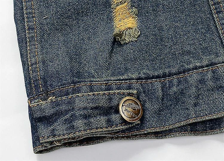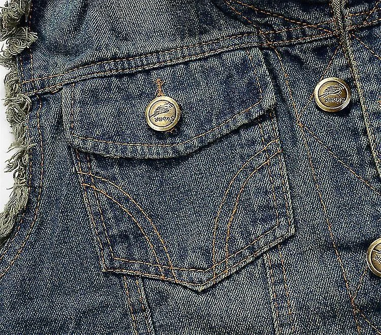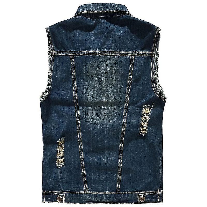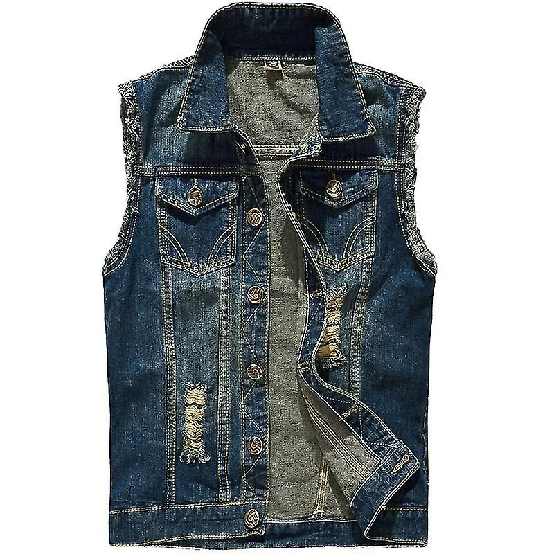This casual sleeveless value down denim vest jacket features lapel collar,single values breasted,two chest pockets.The retro ripped design and slim fit design to show your figure,makes this vest more stylish.