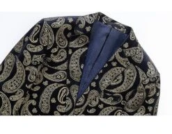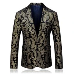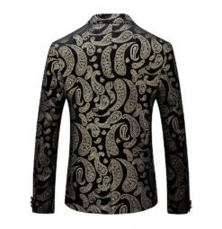 The single-breasted blazer is feature with regular fit, shawl collar, one value closure, one front pocket,two side flap pockets and two inside pockets, allover classy paisley embroidered pattern makes it a head turner.
