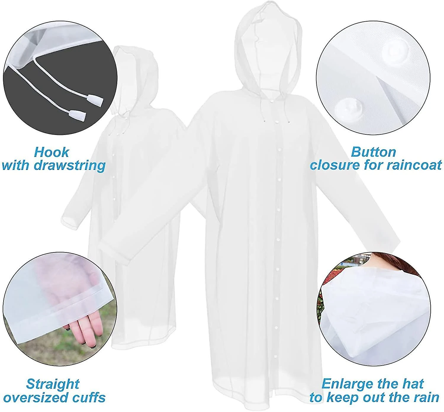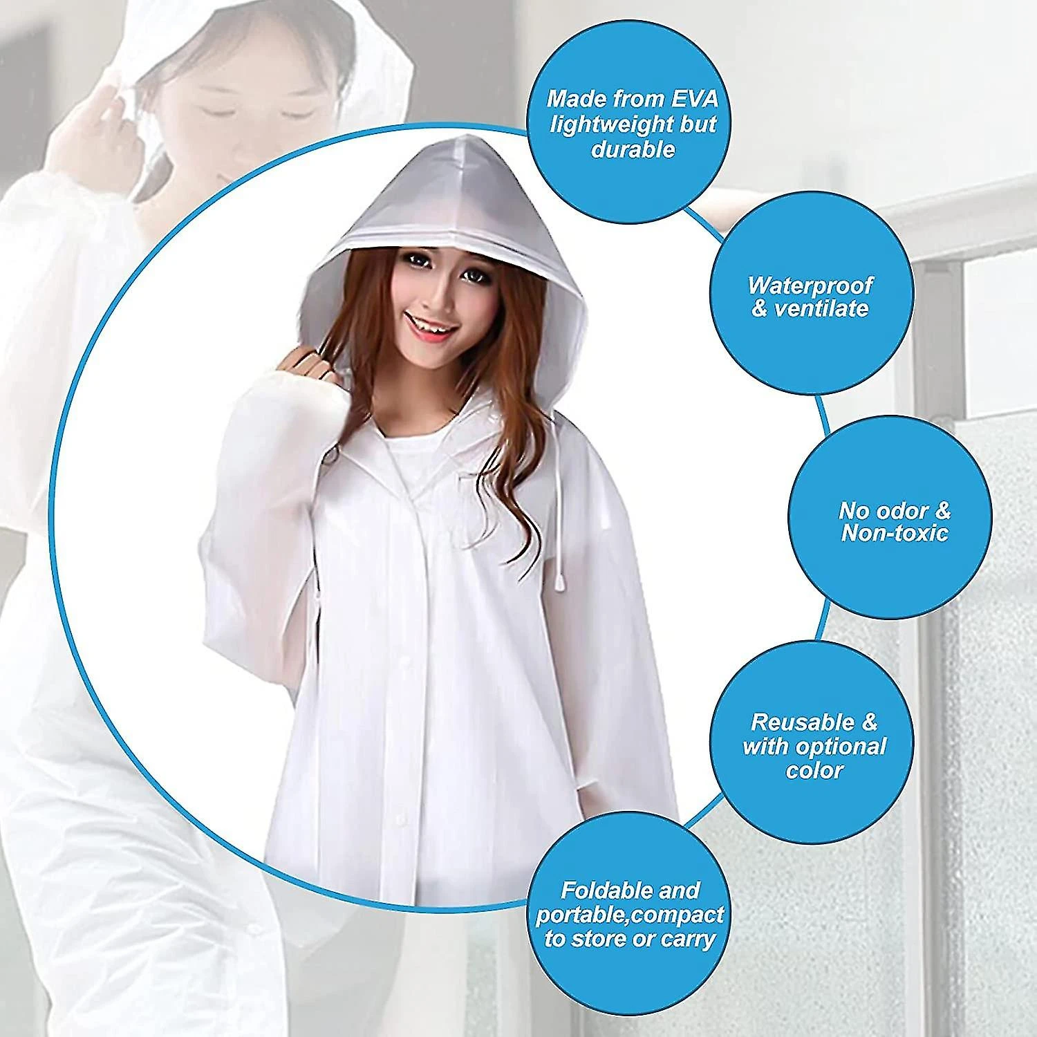 SECURITY & ECO-FRIENDLY : Made of 100% EVA, an enviromentally friendly material, rain poncho is non-toxic, no smell and harmless, compared to the PVC one. .
