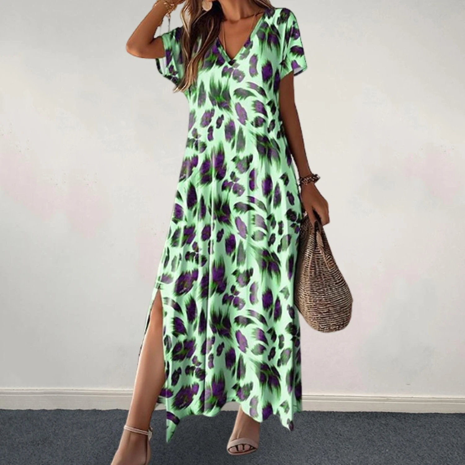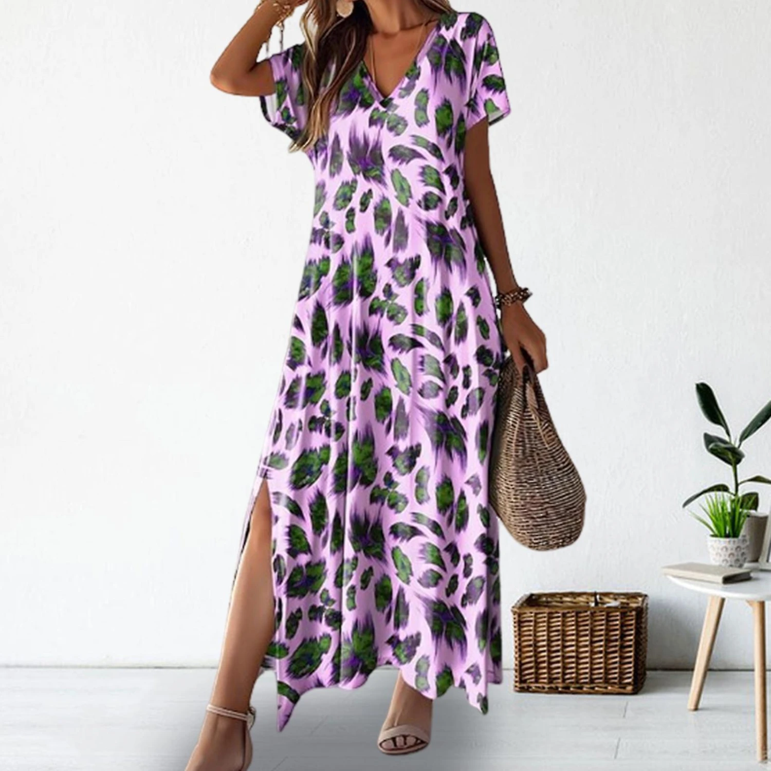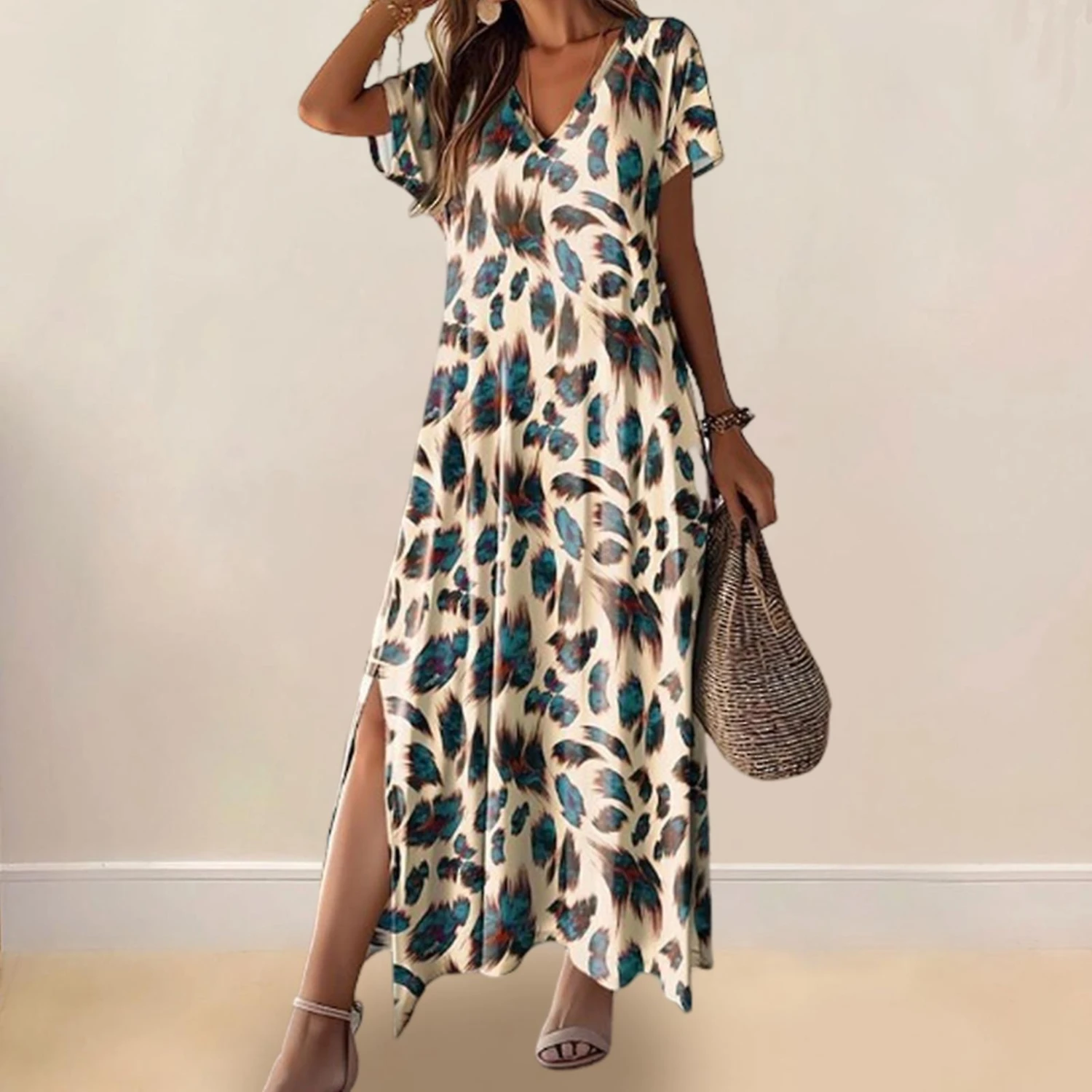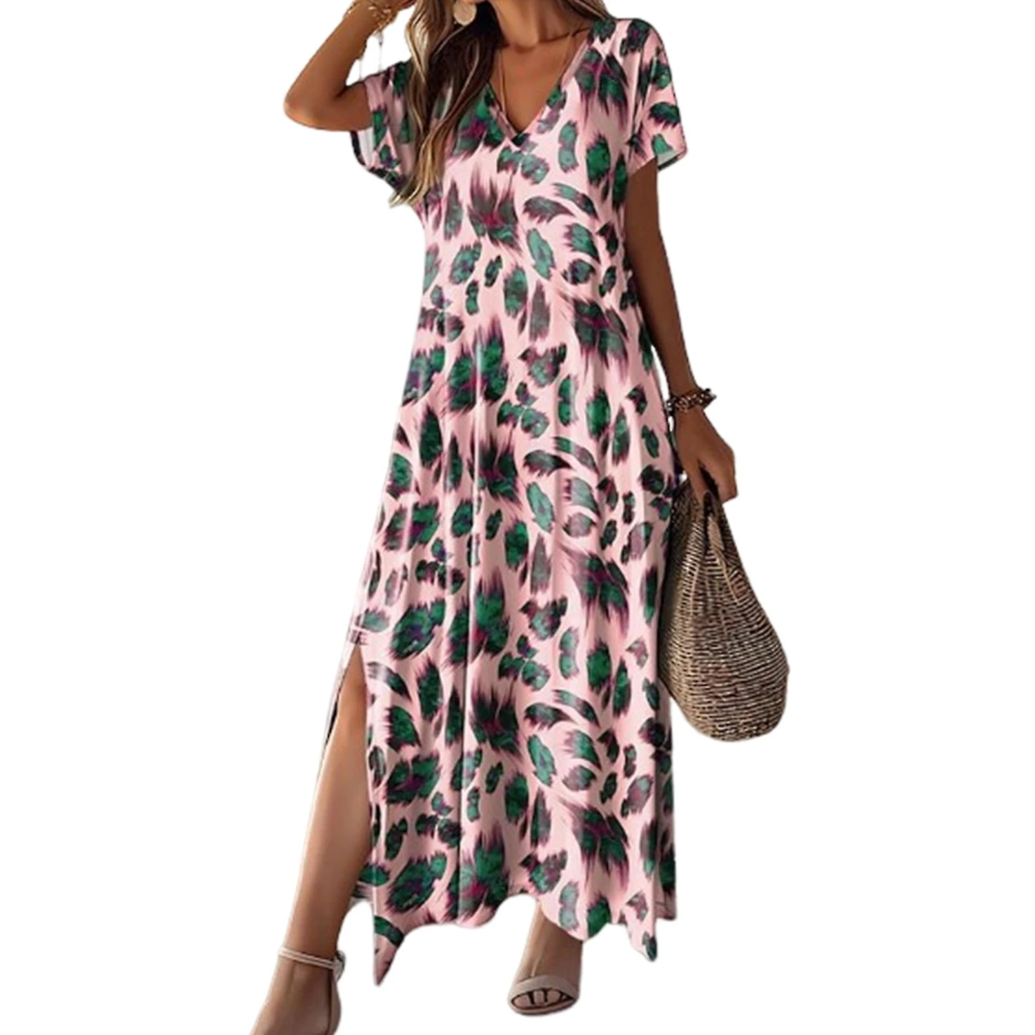 Elevate your style with this chic Women’s Dress featuring a loose fit and slit design that complements various body shapes. The V-neck and short-sleeved design, along with the elegant printed pattern, create a fashionable A-line silhouette that flatters your figure. Crafted from high-quality polyester, this lightweight and breathable dress offers exceptional comfort. Ideal for daily wear, dates, work, and travel, this versatile dress can be effortlessly styled with a woven hat and bag for a vacation-ready look. From office meetings to beach outings, this dress is perfect for any occasion, making it a must-have in your wardrobe.
