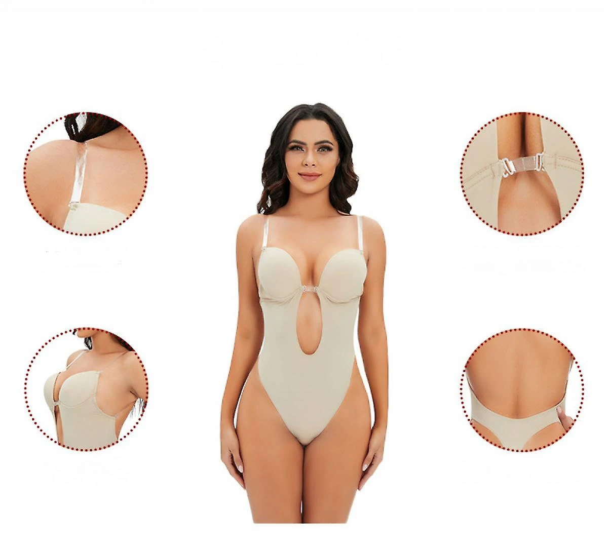 Sexy Deep V Seamless Bodysuit: Our plunge backless body shaper bra build a sexiest look under clothes, clear straps can show your perfect shoulder and perfect back.