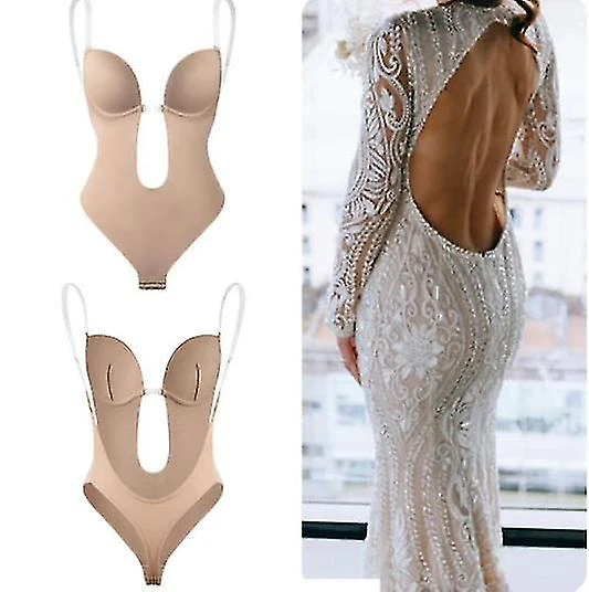 Shapewear with deep plunge, V-Neck and backless design, This bakckless shapewear could offer more support with underwire bra,and the Shapewear fit for Deep Plunge and Low back Dress. Shoulder strap design: Adjustable single shoulder and cross-tie method,the length of the strap could be adjust freely..