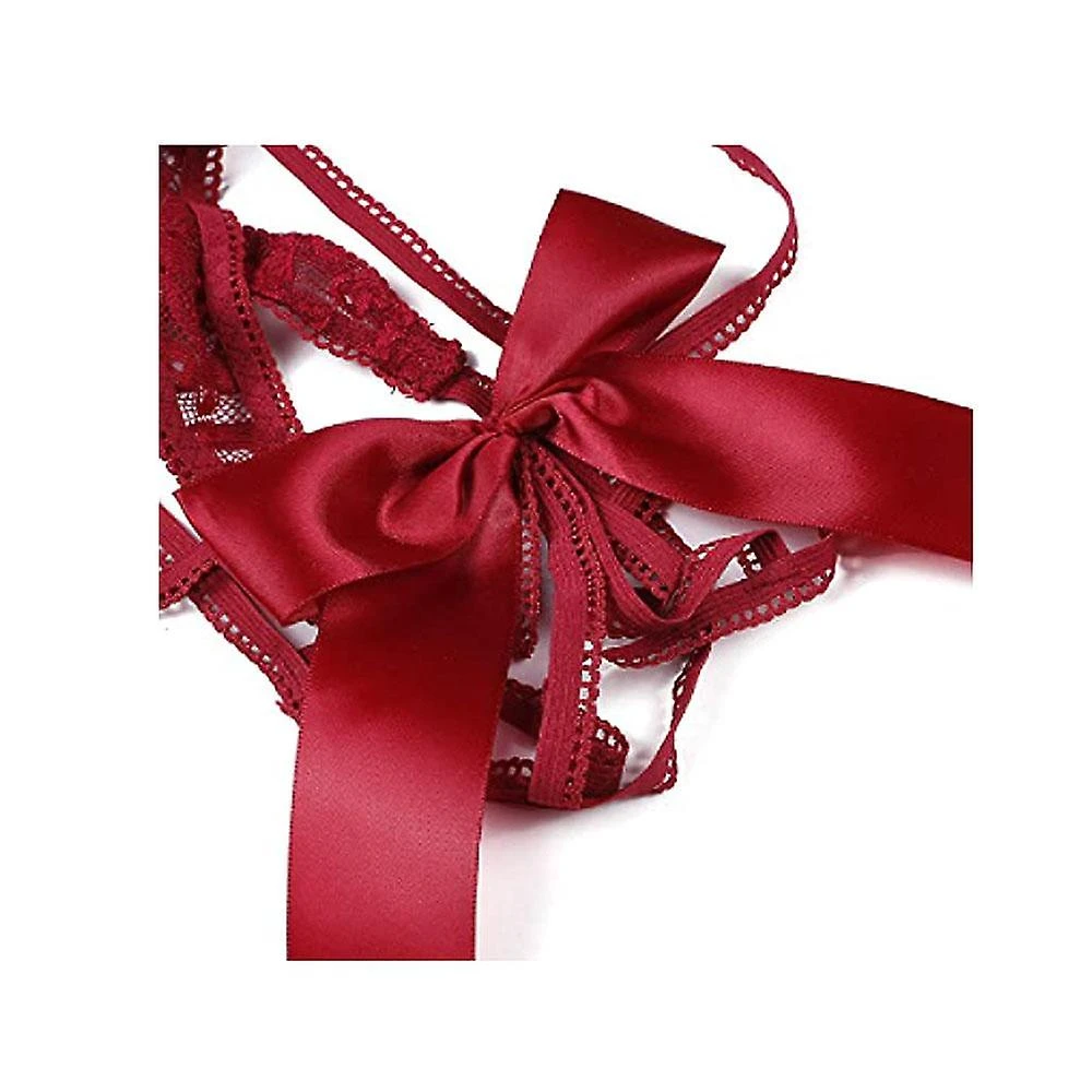 This Teddy underwear features a deep V-neck with a bandage design, adjustable shoulder straps, satin bow decoration, a keyhole at the bottom, a hook-eye back closure, and a sexy back design.
