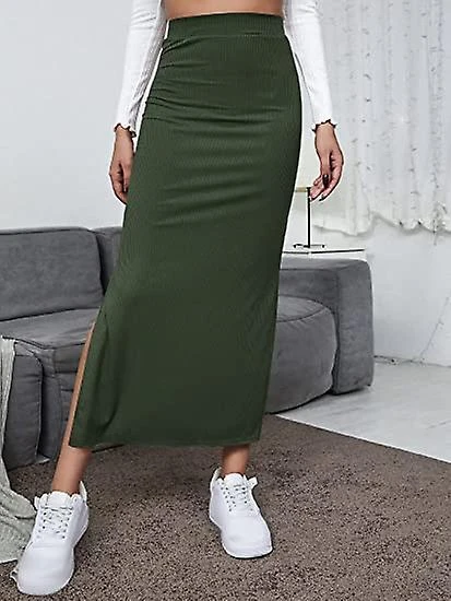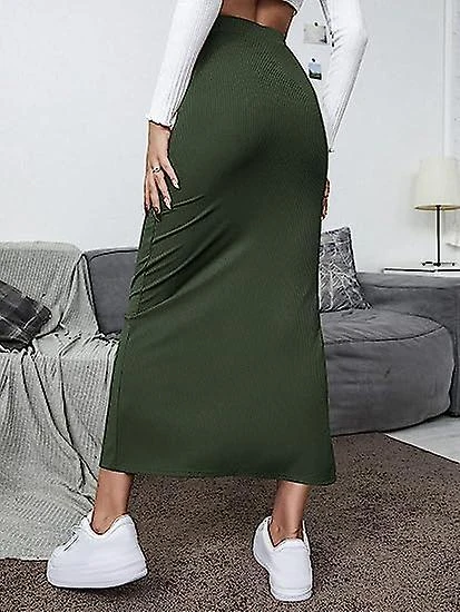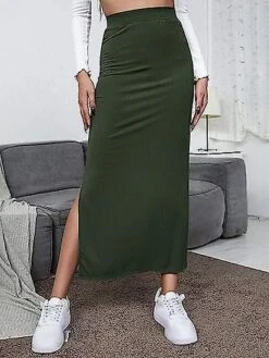 Women ribbed skirt casual long side slit skirt for daily wear, pencil skirts for women knee length