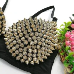 1. Women’s studded rhinestone sequin beaded push-up bra shiny adjustable straps dance bra top.