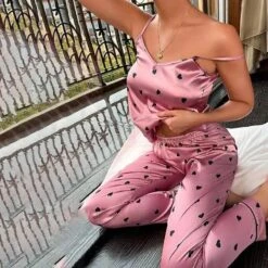 Women satin pajama set with soft and smooth silky feel fabric, will keep you easeful while sleeping at nightPajamas for women cami top is designed , floral print, sleeveless and v necklineThis pajama pants for women have an elastic waistband and tie front, perfect for relaxing evenings at homeThe sleepwear set is perfect choice for Wedding Night, Honeymoon, Valentine’s Day, Anniversary, Bedroom, Bathroom, loungewear, sleepwear etc.
