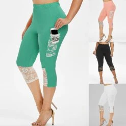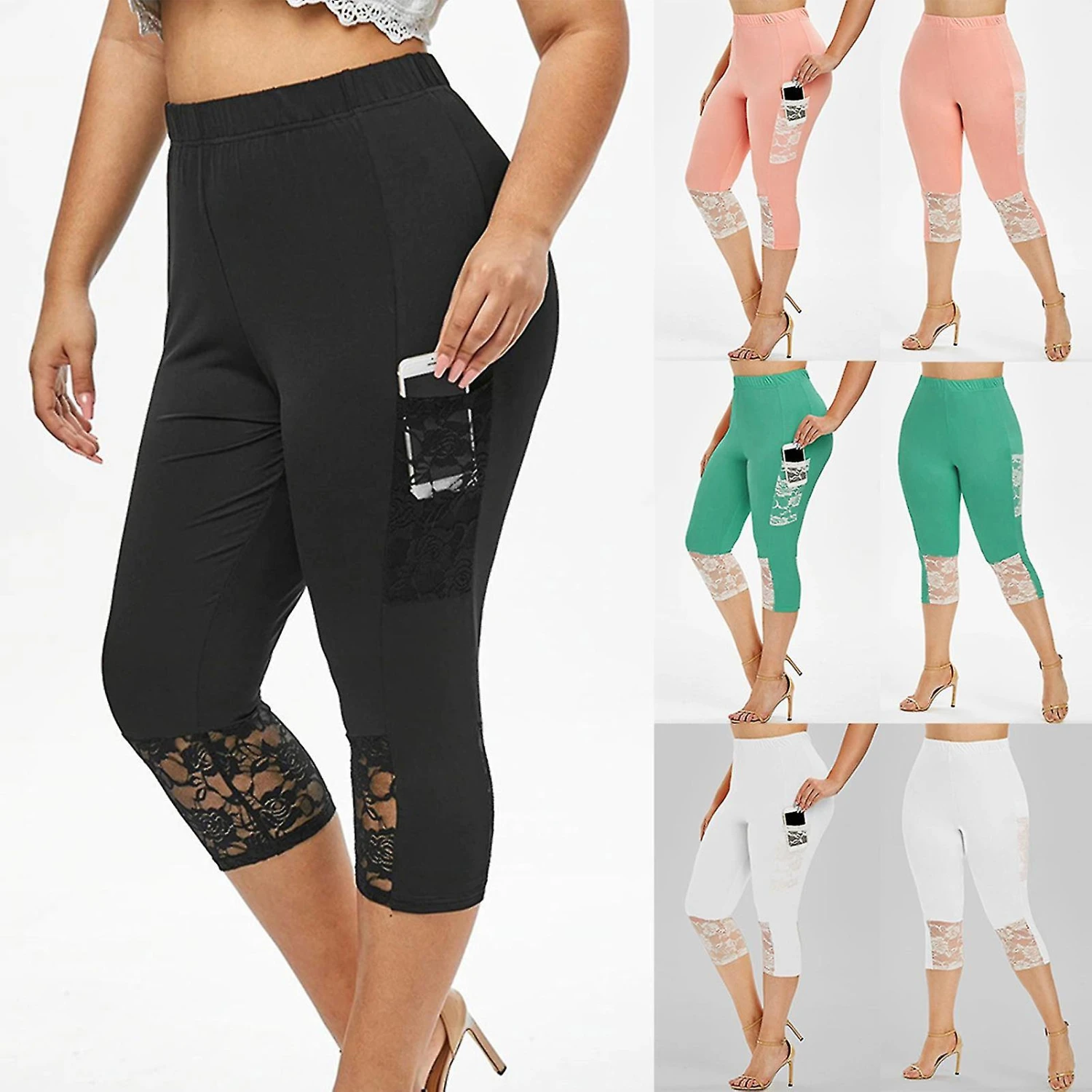 Elastic waist design makes this pants fit different people’s waist circumferences. Lace stitching and lace insert pocket make the pants very unique.The high stretch design makes you feel very comfortable to wear it. And the breathable and soft fabric makes it suitable for sports.Made of high quality polyester material, it is skin-friendly and comfortable to wear.There are six sizes to choose from: L, XL, 2XL, 3XL, 4XL, 5XL.It is suitable for going out, outdoor, daily wear and so on.Item Name: Capri PantsMaterial: PolyesterGender: WomenStyle: CasualSeason: SummerSize Type: RegularWaist: High WaistPants Length: Capri PantsFeatures: Lace Stitching, Slim, Solid ColorSize Details: [Our Size L] Waist: 86cm/33.9″, Hip: 103cm/40.6″, Length: 73cm/28.7″ (Approx.)[Our Size XL] Waist: 92cm/36.2″, Hip: 109cm/42.9″, Length: 74cm/29.1″ (Approx.)[Our Size 2XL] Waist: 98cm/38.6″, Hip: 116cm/45.7″, Length: 75cm/29.5″ (Approx.)[Our Size 3XL] Waist: 104cm/40.9″, Hip: 121cm/47.6″, Length: 76cm/29.9″ (Approx.)[Our Size 4XL] Waist: 110cm/43.3″, Hip: 127cm/50″, Length: 77cm/30.3″ (Approx.)[Our Size 5XL] Waist: 116cm/45.7″, Hip: 133cm/52.4″, Length: 78cm/30.7″ (Approx.)Notes:Please refer to our size chart and choose the right size.Due to the light and screen setting difference, the item’s color may be slightly different from the pictures.Package Includes:1 x Capri Pants