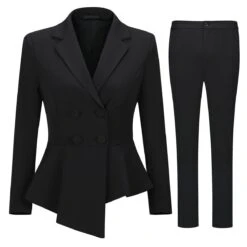 Women’s 2 Piece Business Suit Set Lapel Single-breasted Polyester Suit Jacket With Straight Trousers